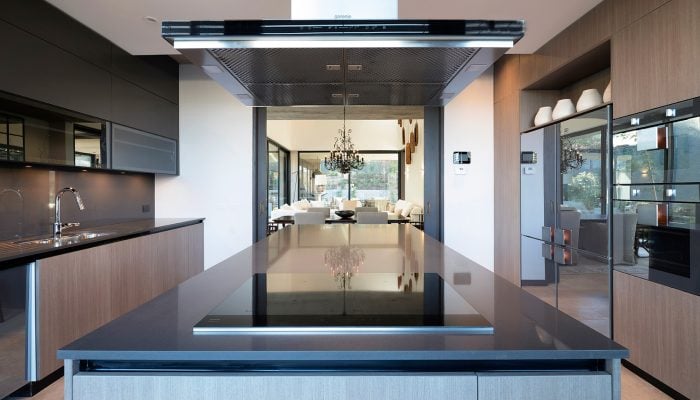 En el corazón de La Dehesa, esta cocina de alto diseño dialoga con la filosofía arquitectónica de Estudio Valdés y la oficina de interiorismo Enrique Concha: pureza de volúmenes e integración espacial.
